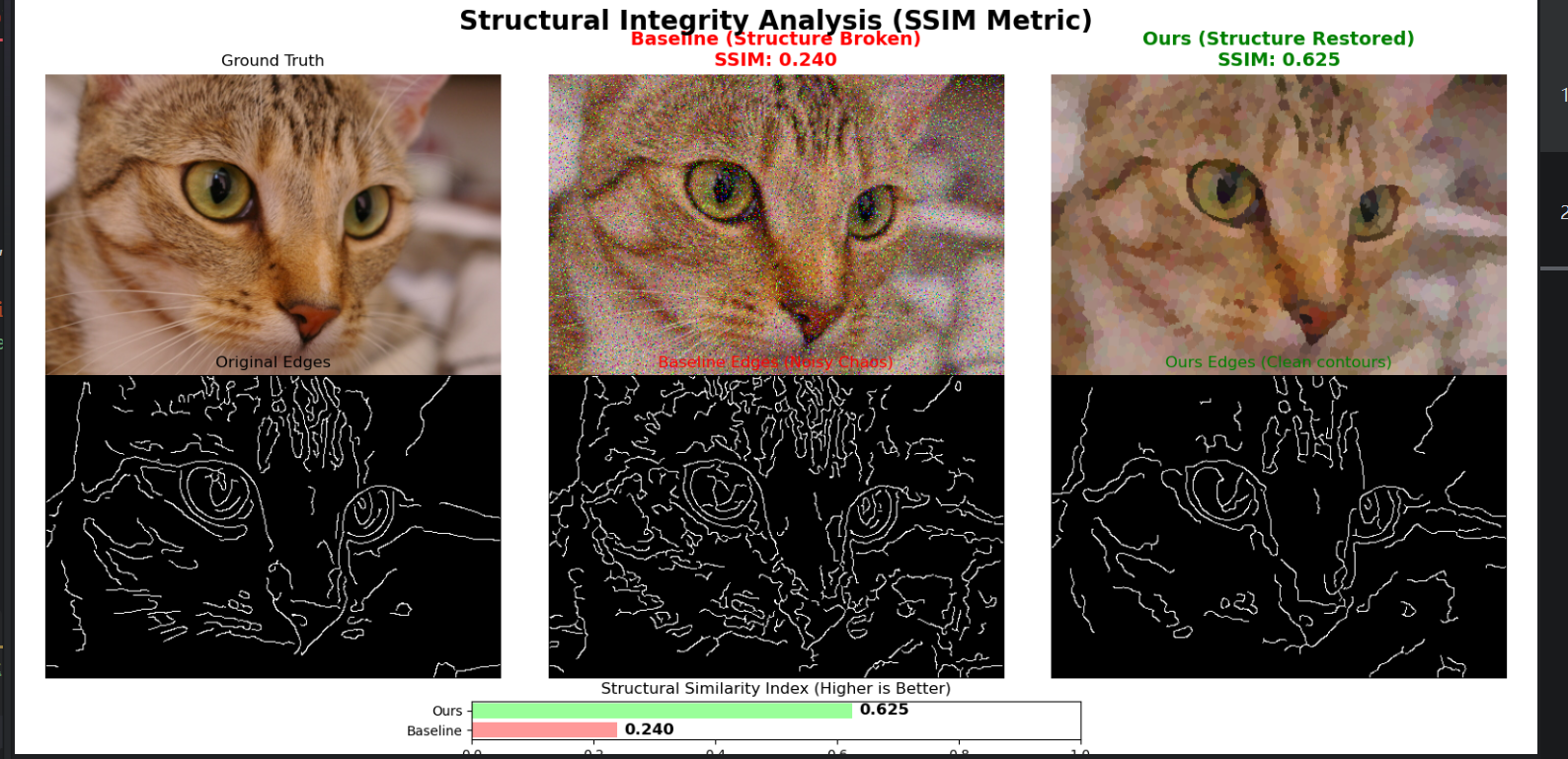 因此我在 PPT 里把评估切换到结构指标 SSIM,并辅以边缘响应和 t-SNE 可视化,这样更符合 CZSL 关注的“结构可组合性”。